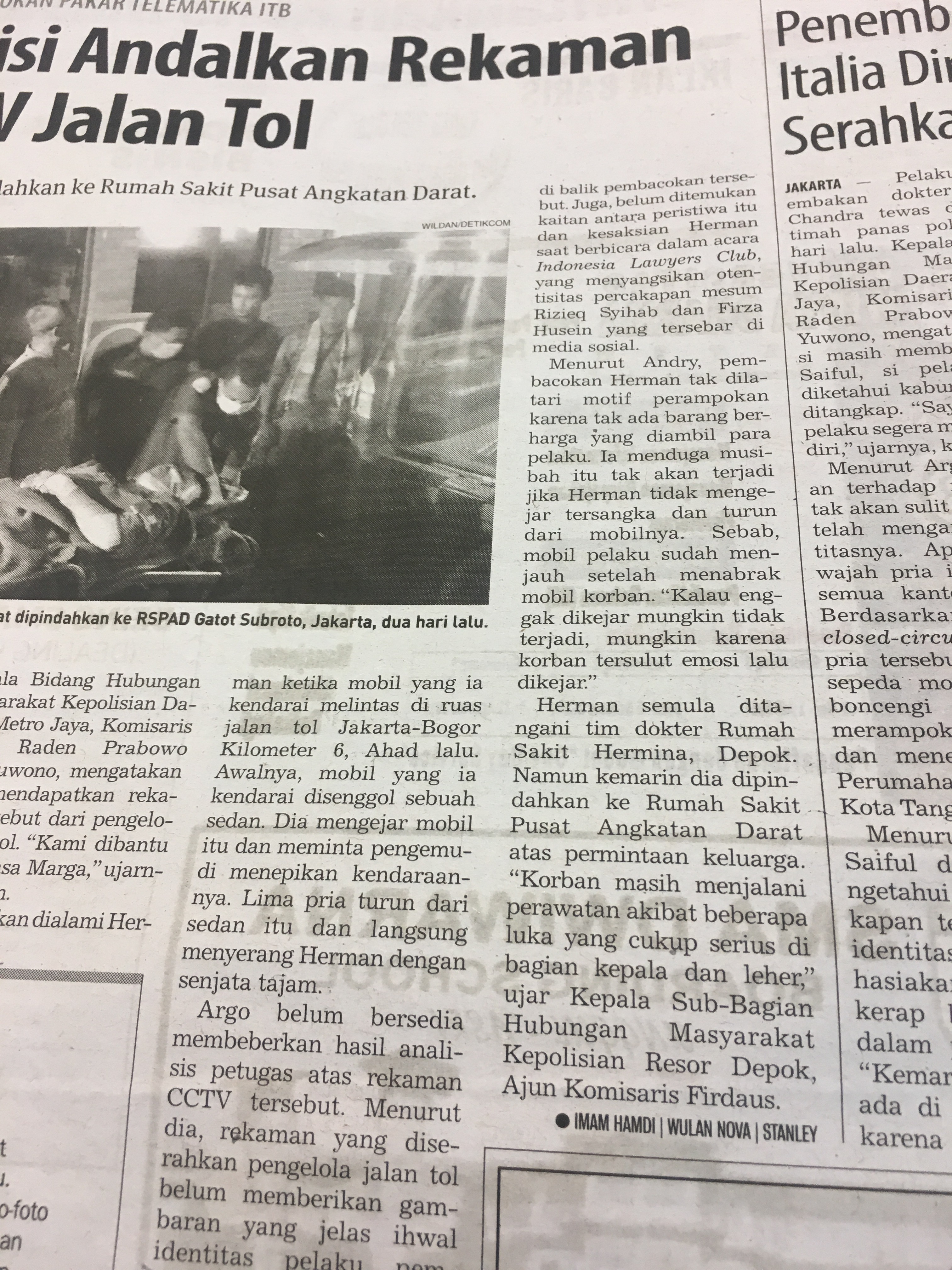 Tidakkah kalian sadari…? *Kepercayaan kami terhadap militer semakin kuat manakala kami mempercayakan perawatan saudara kami kang Herman ke RSPAD…?*_Disitulah militer dan ITB mulai menempel._